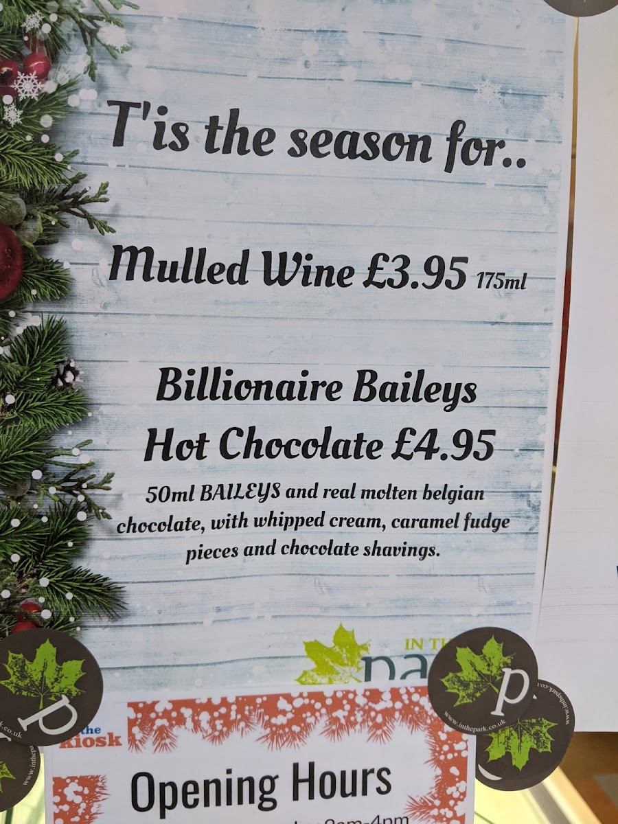 The Kiosk, In The Park Menu